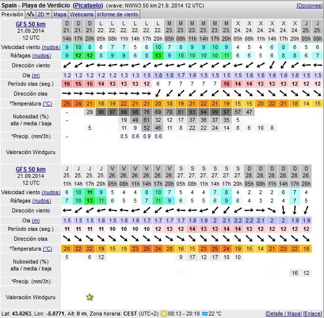 -Lunes 22 - Comenzamos la cuarta y ultima semana entera del mes de septiembre además de ultimo día de verano 2014 con mar de 1,5m , periodos del oeste 13 y viento nordeste .